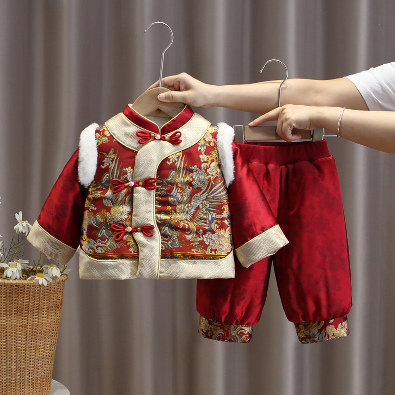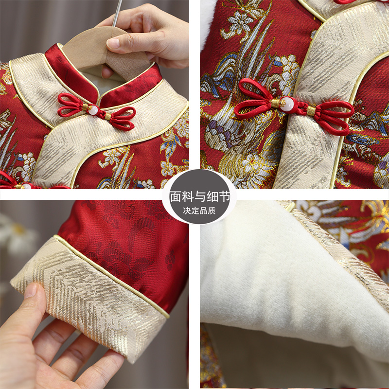 女宝宝周岁礼服唐装 喜庆新年衣服儿童年服 冠衣女童周岁宴抓周中式