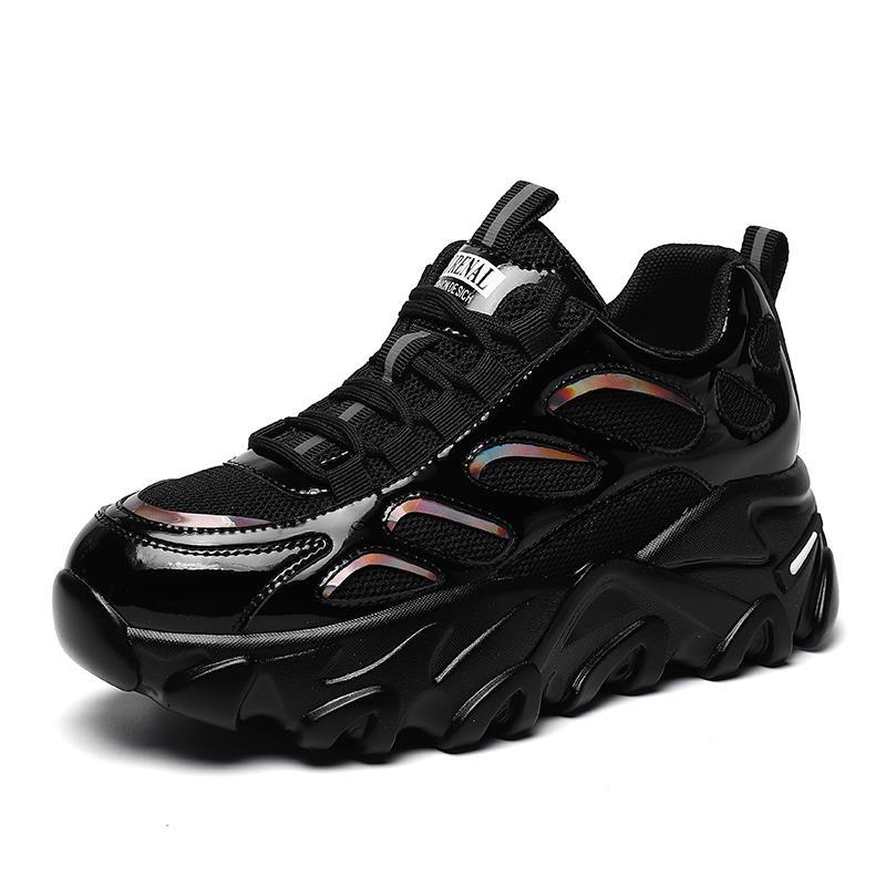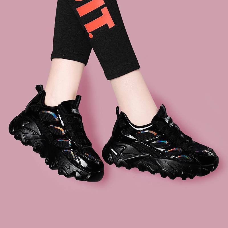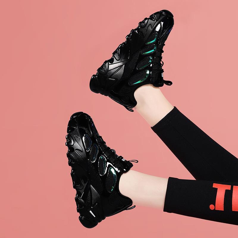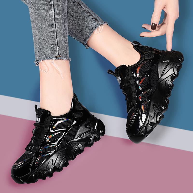 网面潮显脚小休1010u 女2025年季 秋冬小皮鞋 女旅游黑色百搭老爹鞋