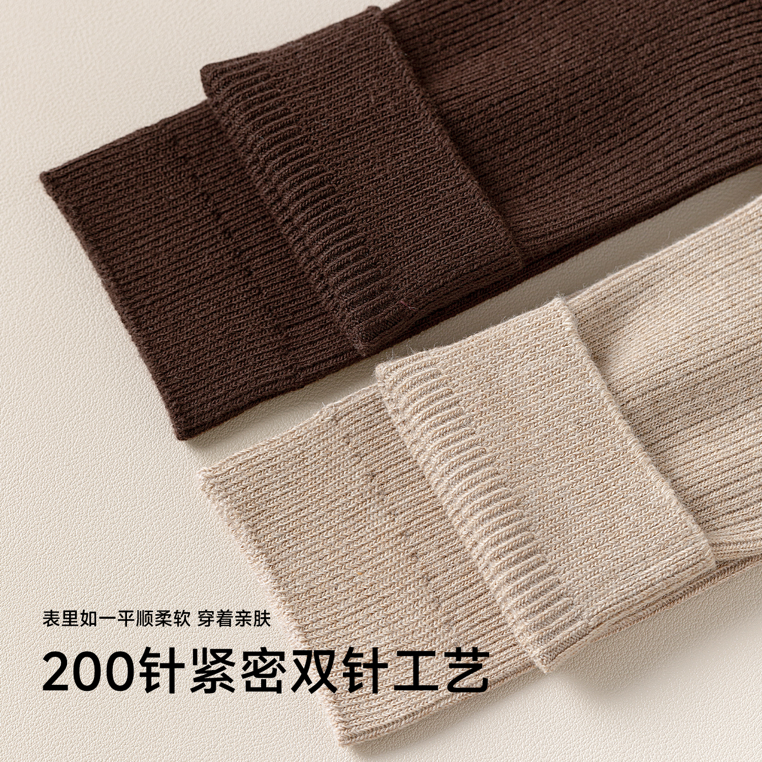 袜子女秋冬款 中筒袜 长袜咖色堆堆袜美拉德系双针纯棉防臭搭勃肯鞋