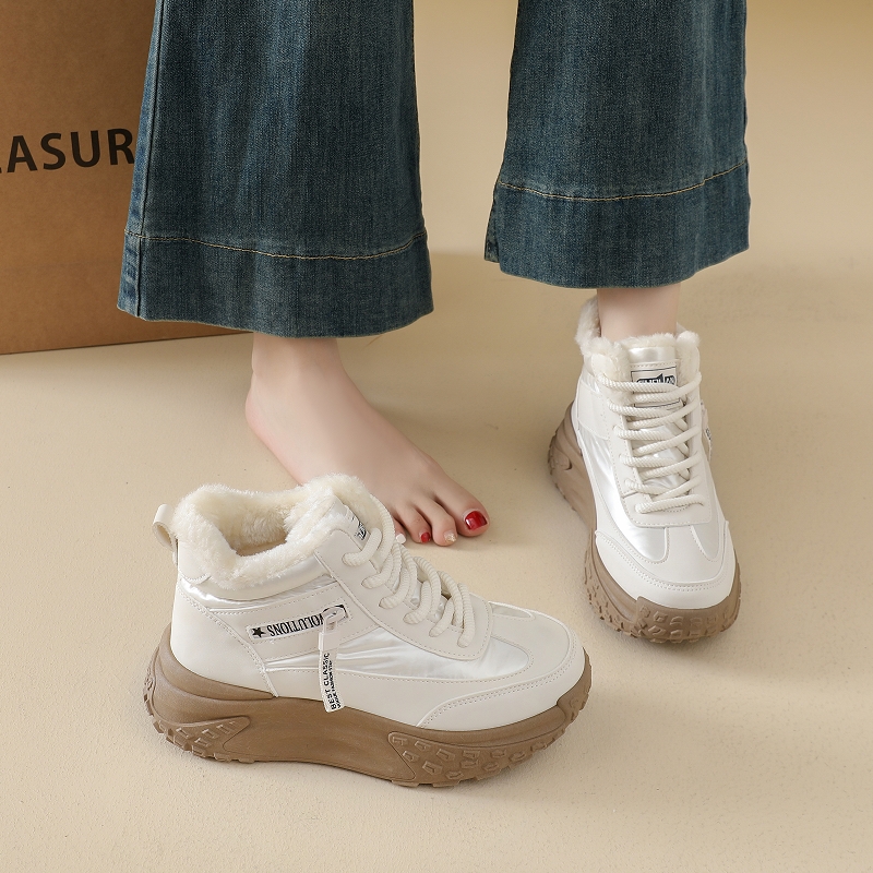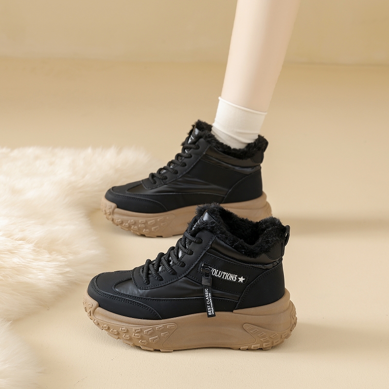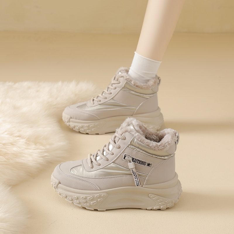 保暖加绒面包鞋 防水短筒增高棉鞋 新款 松糕厚底雪地靴女2025年冬季