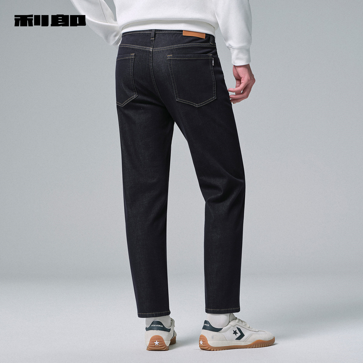 科技蓝 牛仔裤 四面弹 利郎官方 男2025冬保暖小脚裤 内里磨毛