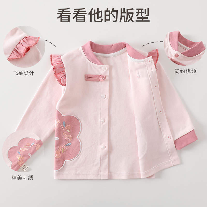 国风繁华两件套 保暖秋衣秋裤 婴儿分体高腰护肚套装 纯棉女宝宝冬季