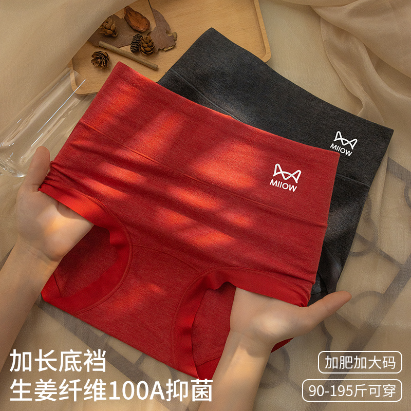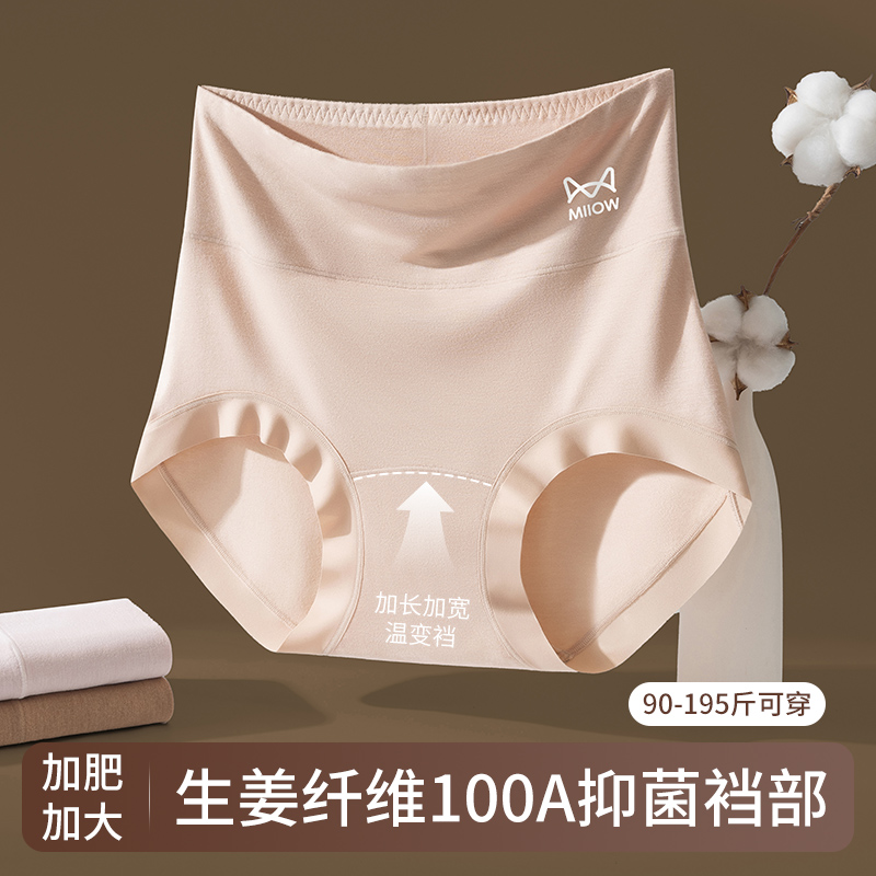 无痕不夹臀高腰四角裤 抗菌全棉裆大码 女2025新款 猫人纯棉平角内裤