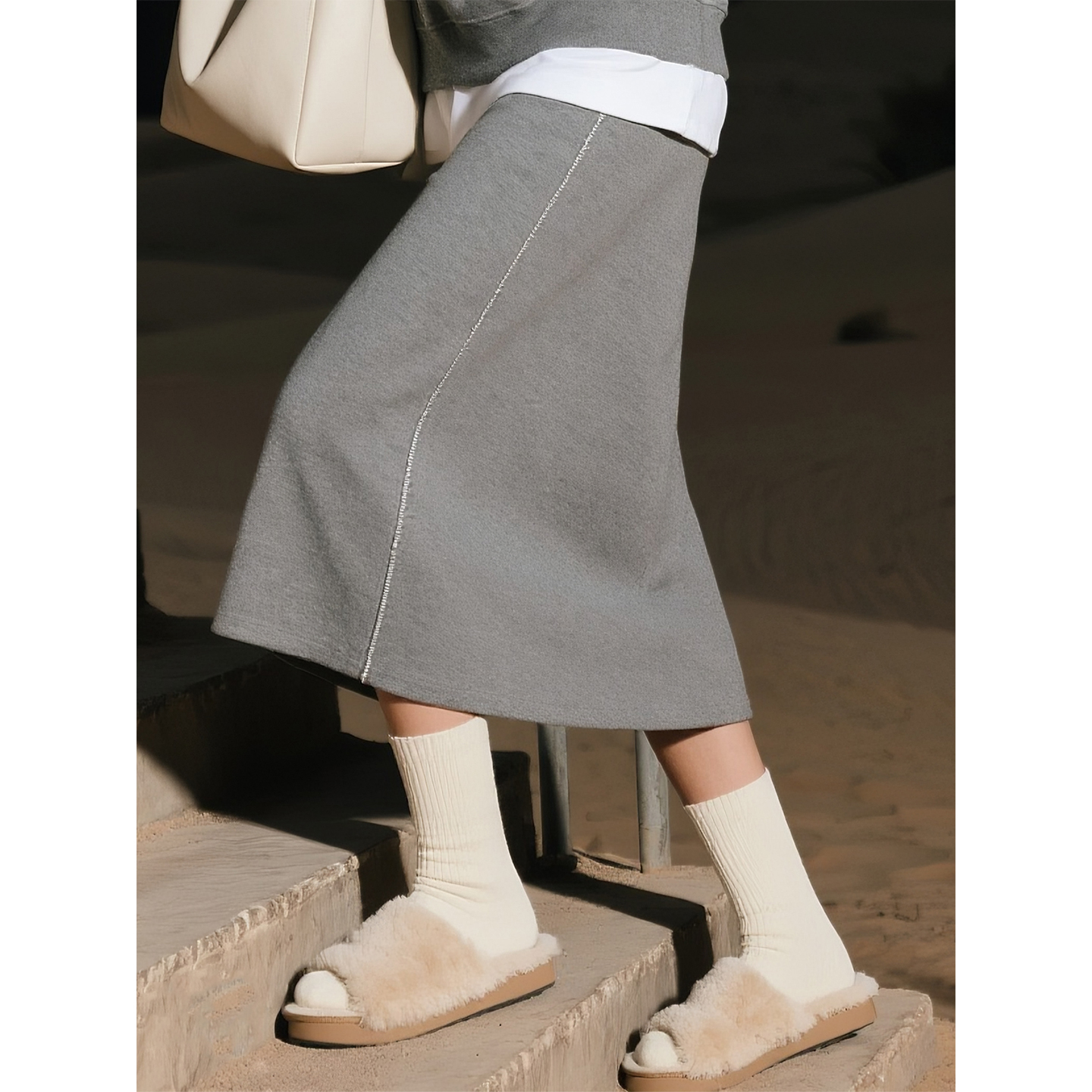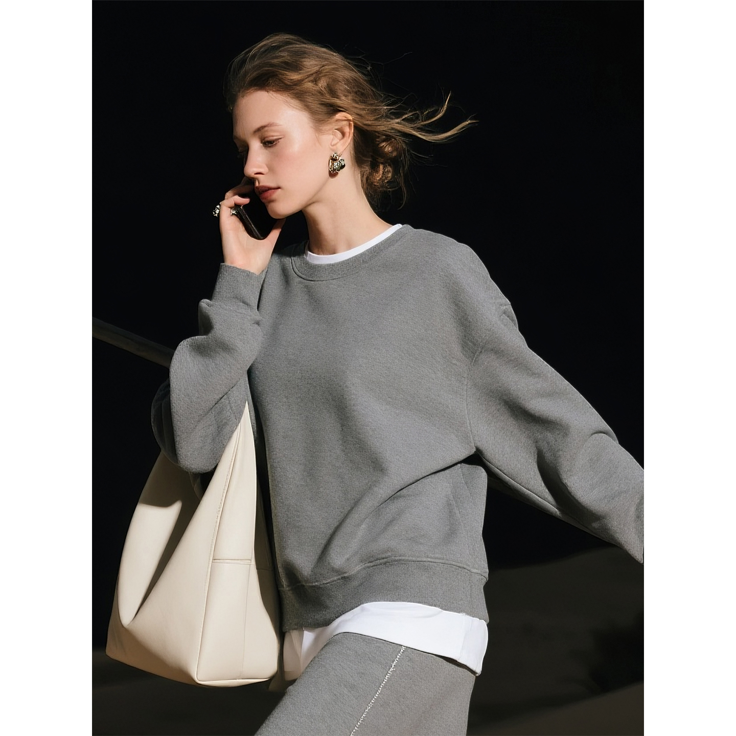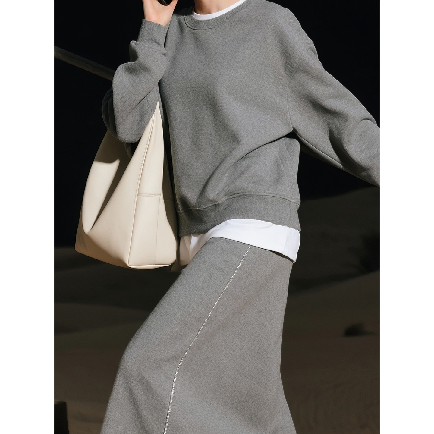 百搭上衣半身裙两件套 时尚 灰色假两件卫衣套装 女2025年秋冬新款