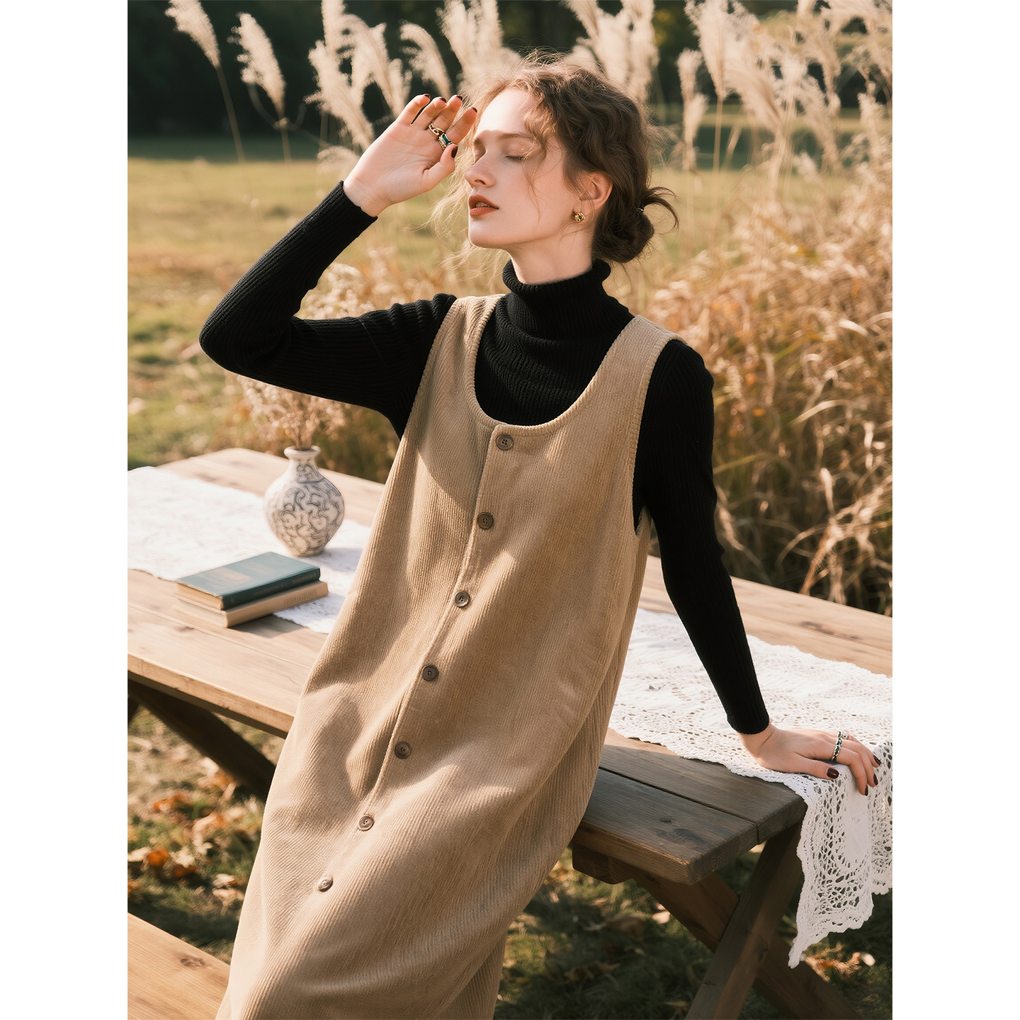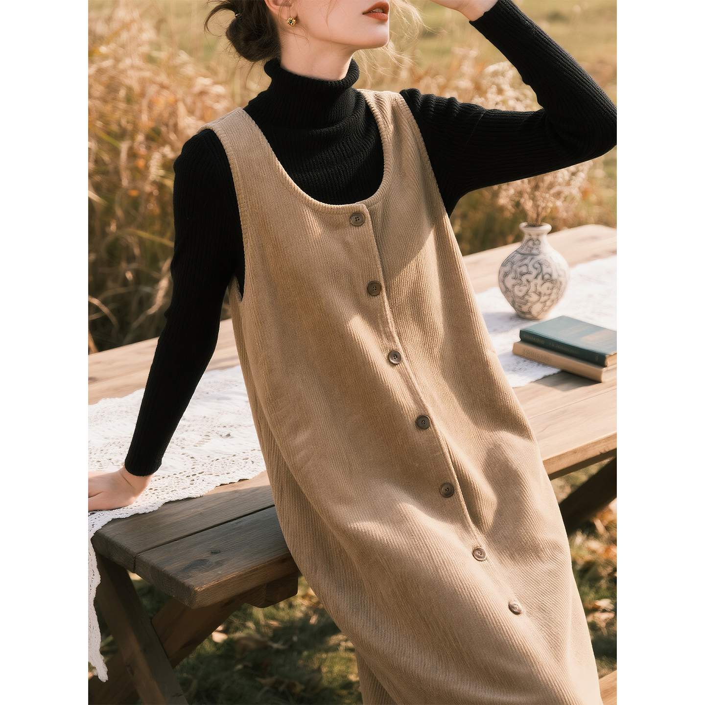 小黑裙 丝绒连衣裙女气质V领慵懒风百搭长款 2025秋冬新款 显瘦无袖