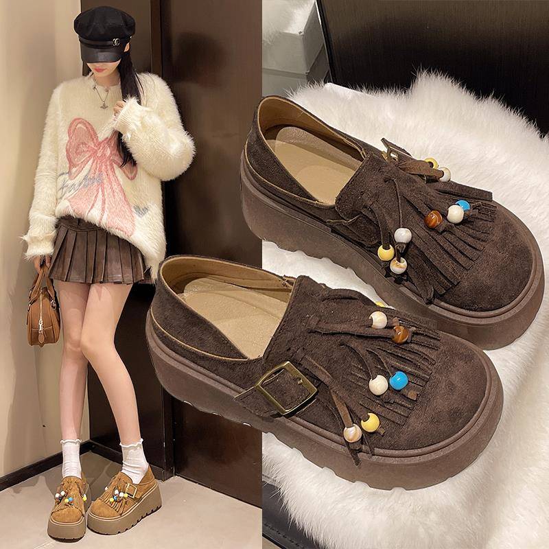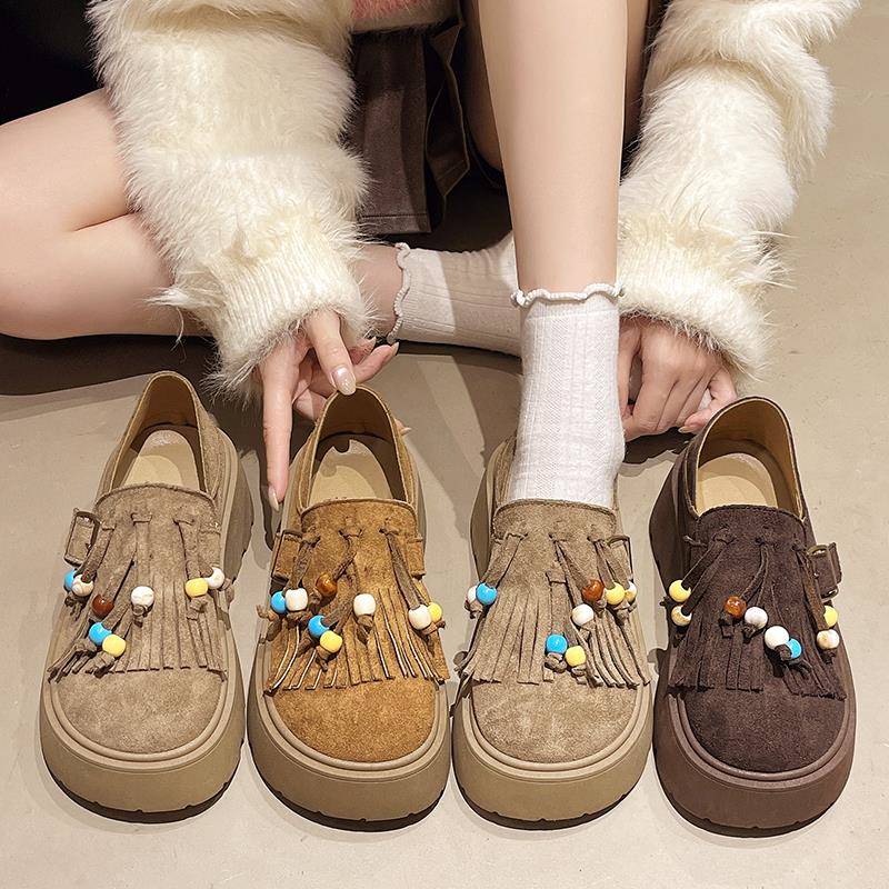 1004z 流苏博肯女士女软底单鞋 秋冬全包勃肯女鞋 子2025新款