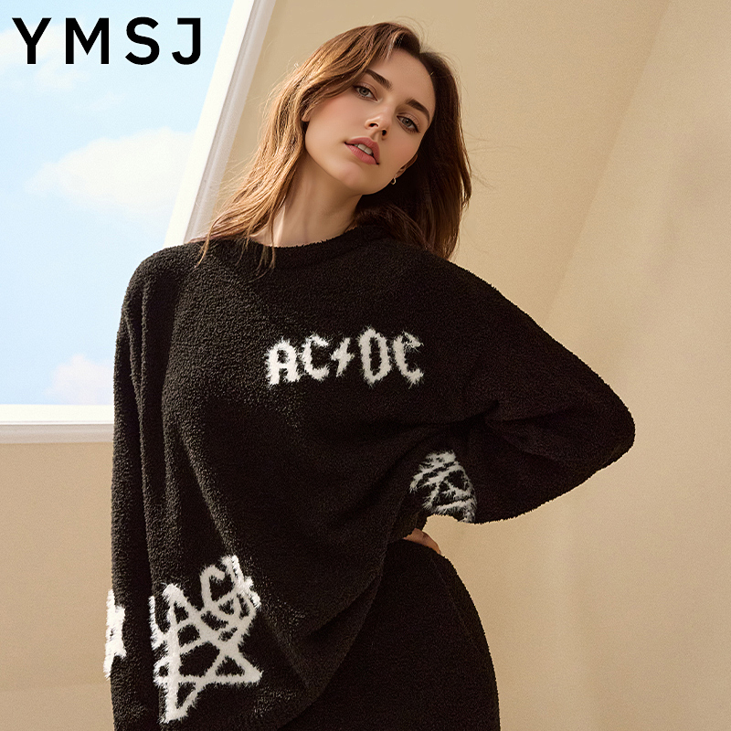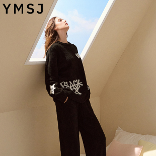 家居服套装 长裤 冬天加绒黑白百搭撞色半边绒睡衣长袖 2025年新款