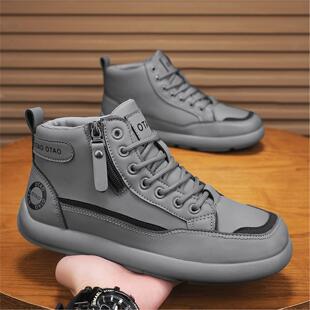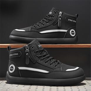 黑色厚底工装 2025新款 休闲板鞋 男士 秋季 皮面软底中帮运动潮鞋 男鞋