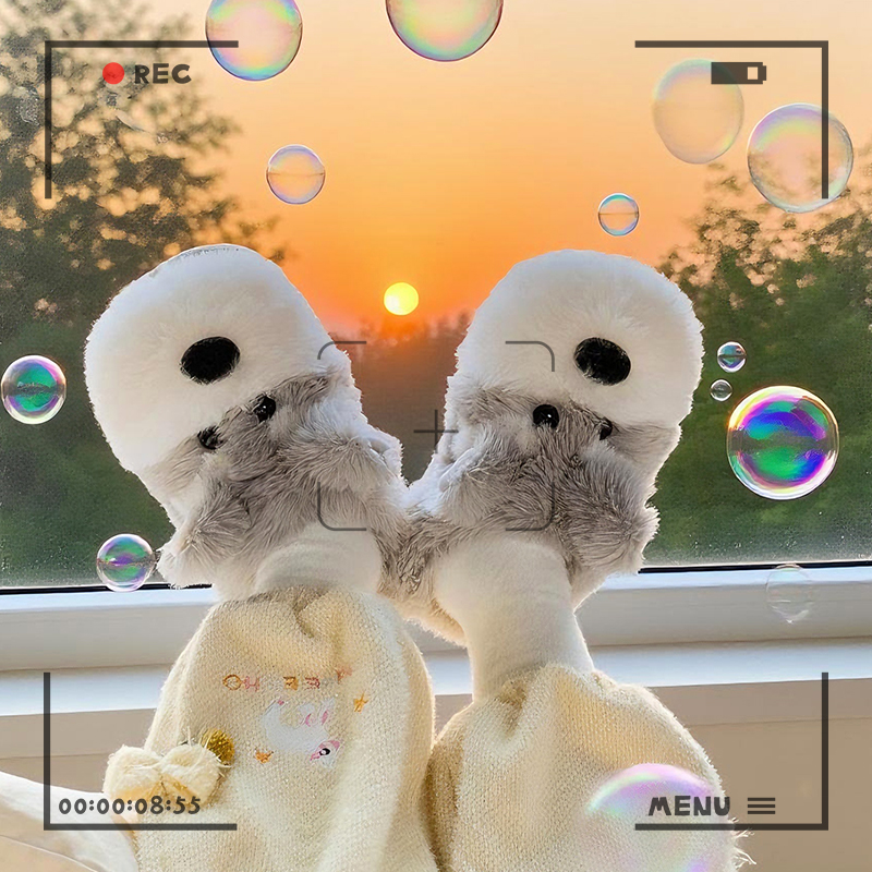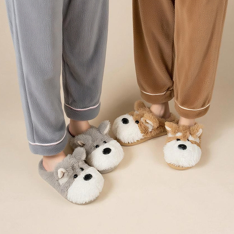 男 室内居家用保暖情侣毛毛拖鞋 可爱卡通雪纳瑞小狗棉拖鞋 女秋冬季