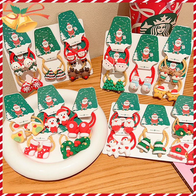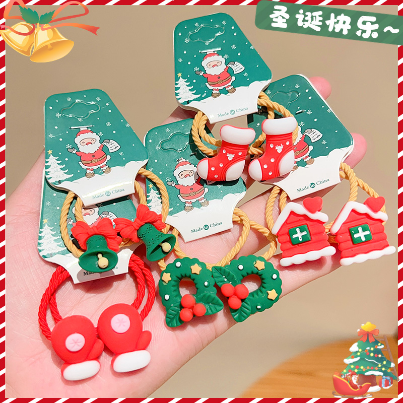 圣诞节头饰小女孩红色发绳可爱卡通圣诞老人不伤发橡皮筋发饰头绳