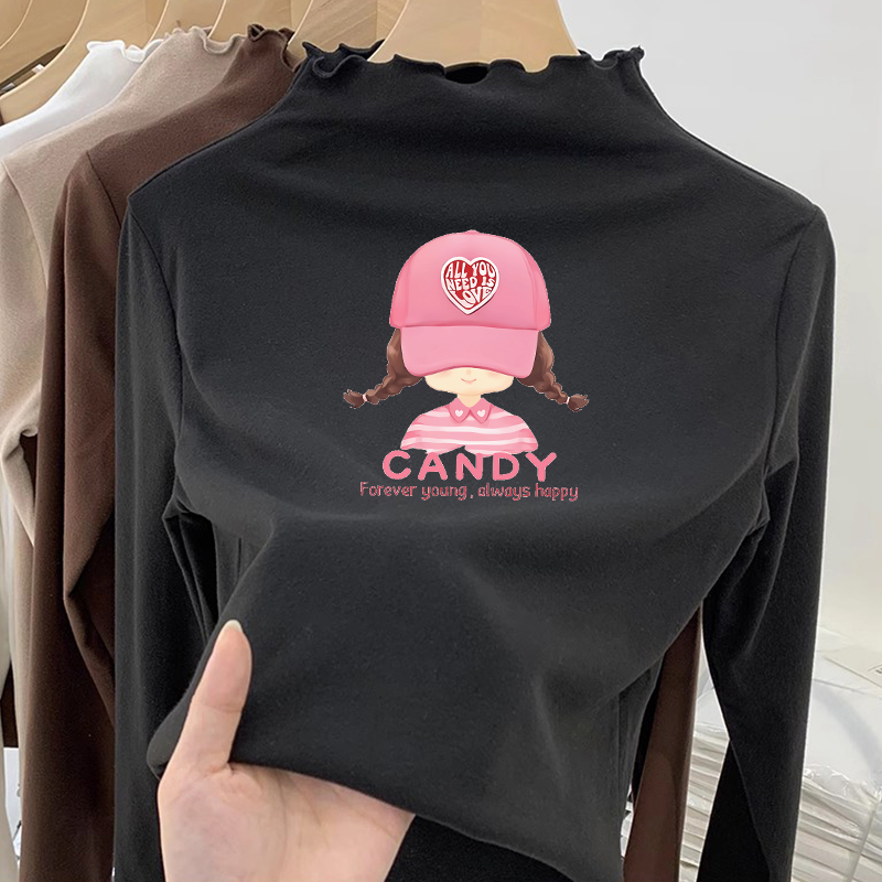 新款 女童德绒秋冬装 T恤木耳边打底衫 宝宝长袖 春秋儿童上衣潮 童装