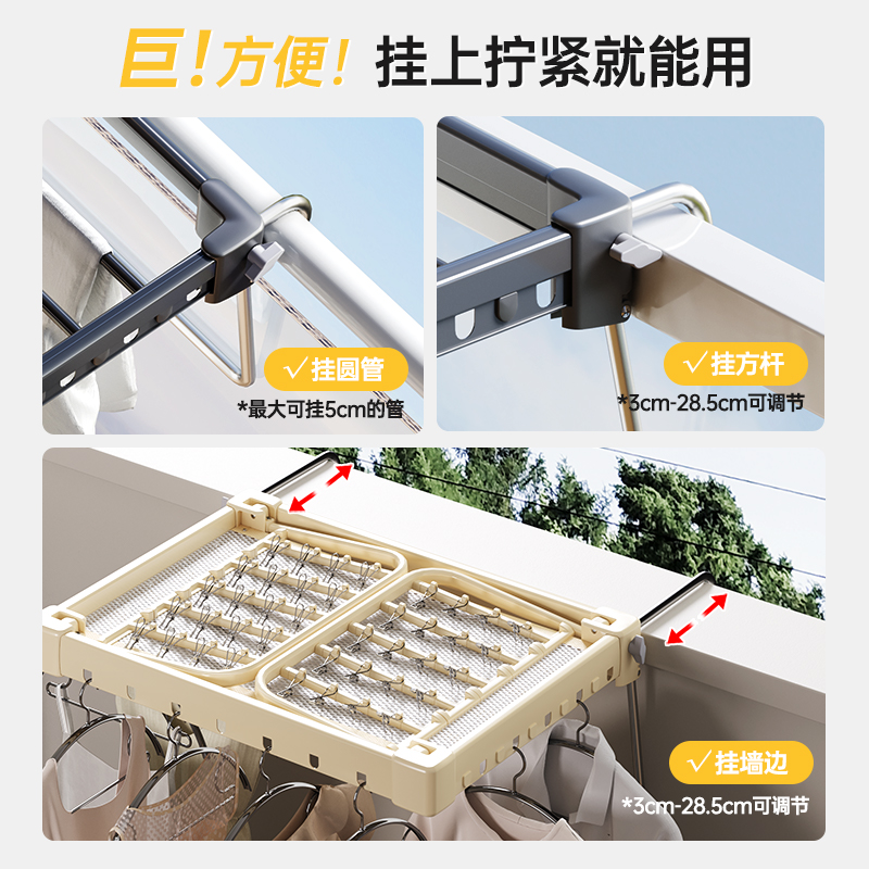 阳台护栏窗外晾衣架可折叠晒架壁挂侧装 子神器 家用多功能晾袜晒鞋