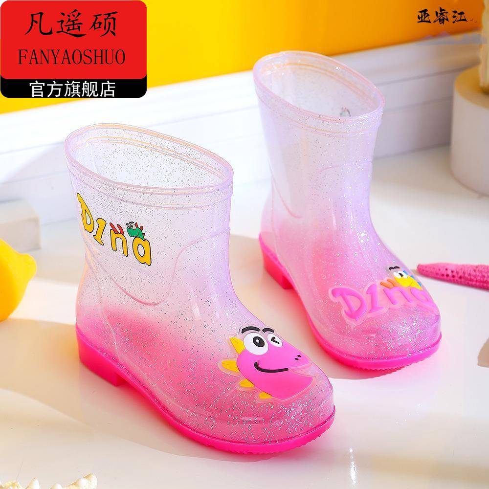 学生小童幼儿恐龙水鞋 透明儿童雨鞋 男女童加绒保暖防滑雨靴夏季