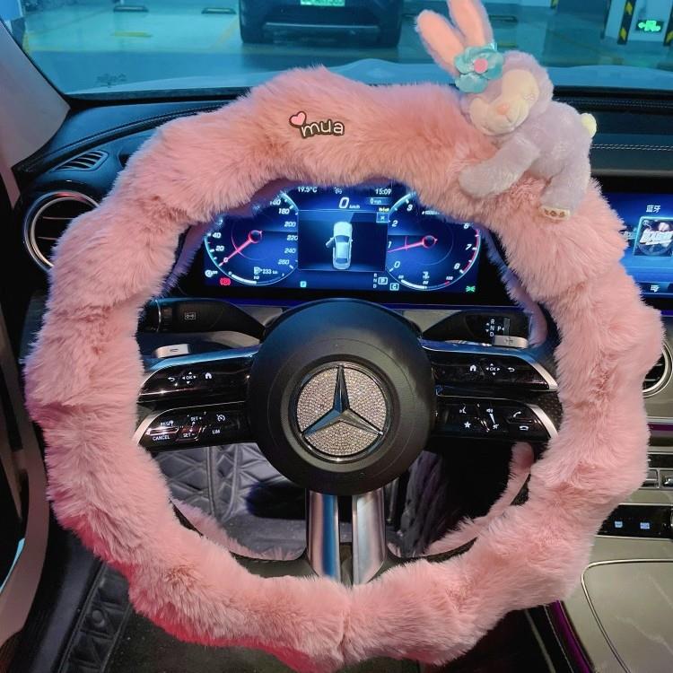 兔毛绒汽车方向盘套冬季 三件套防滑透气短毛把套通用保暖汽车把套