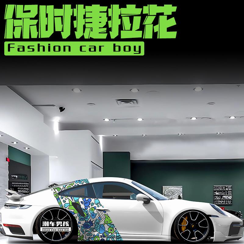 支持个性 汽车两侧贴纸 创意定制 保时捷911细菌涂鸦拉花 靓仔专属
