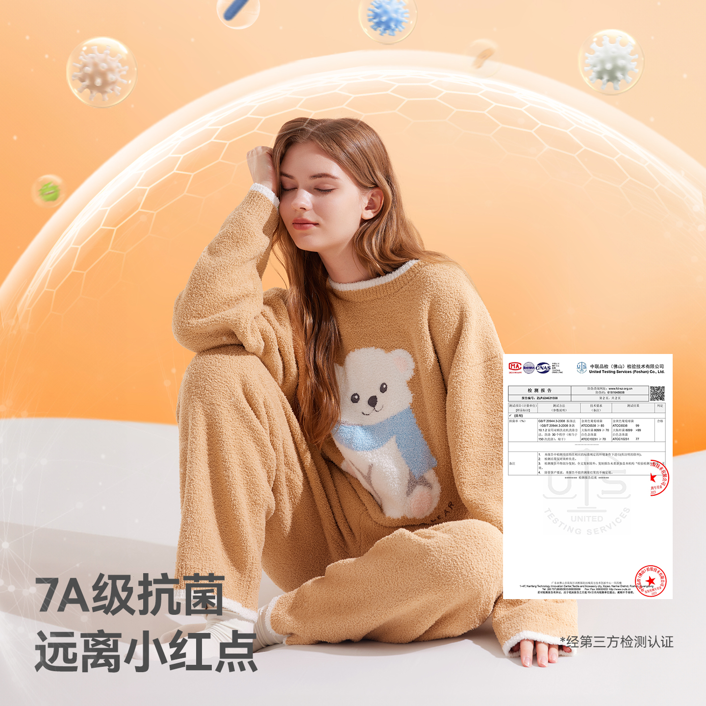 秋冬亲子半边绒抗静电保暖加厚家居服套装 贝肽斯睡衣女款 2025新款