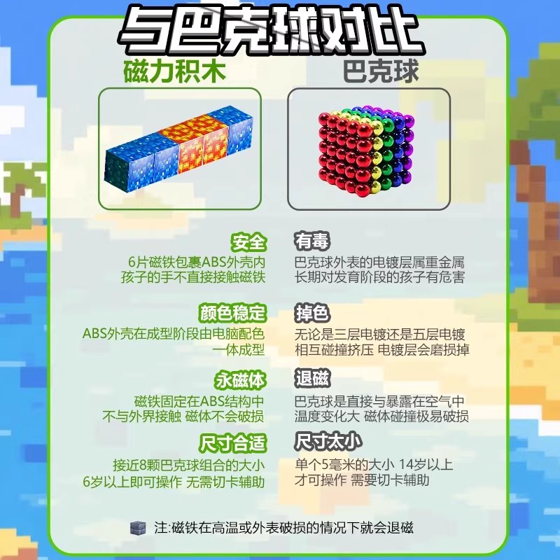 6.6cm大号磁力片棒儿童益智积木磁铁吸铁石贴拼图男孩女孩磁性
