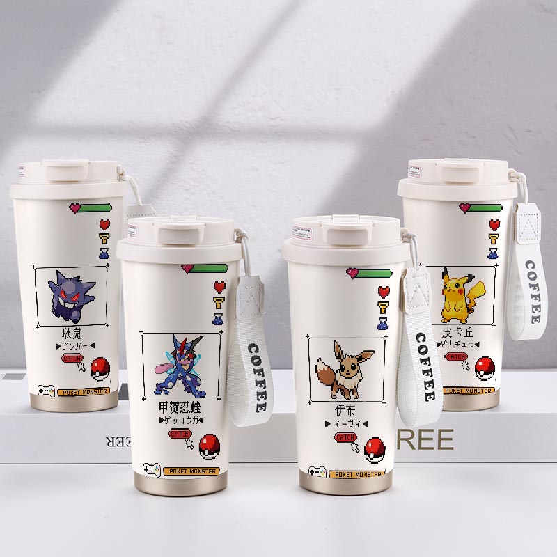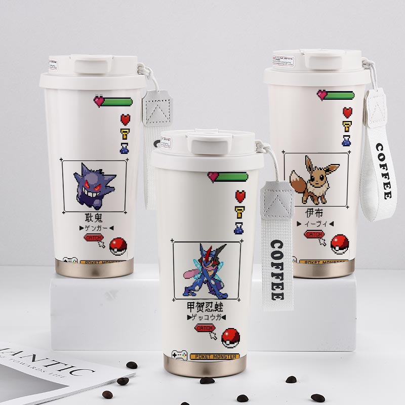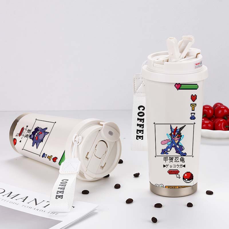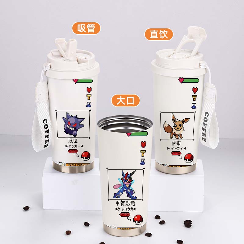 宝可梦周边保温杯耿鬼甲贺忍蛙男生儿童大容量学生不锈钢吸管水杯