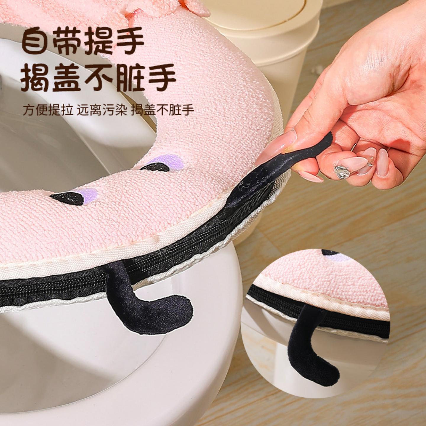 马桶坐垫秋冬季 卡通坐便器垫圈 家用加绒加厚保暖马桶套垫圈拉链款