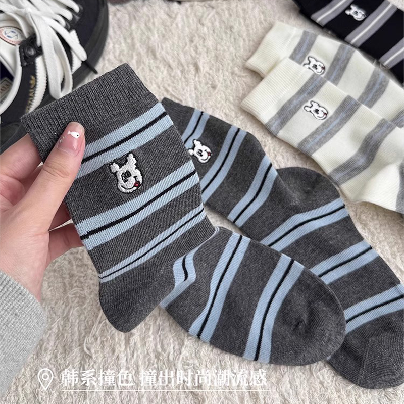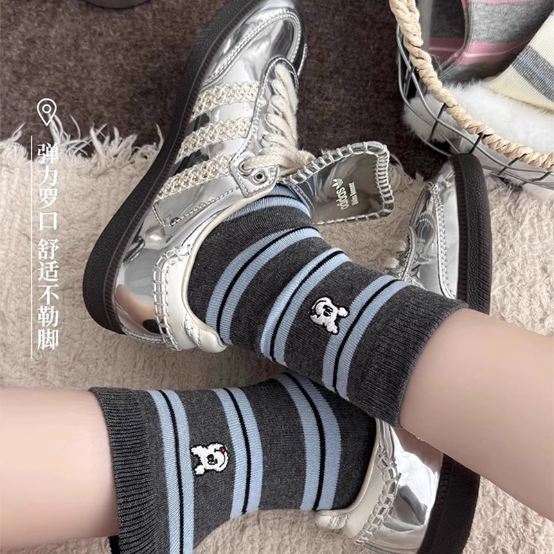 搭配小皮鞋 中筒袜秋冬季 白色防臭月子无骨 纯棉春秋季 堆堆袜子女款