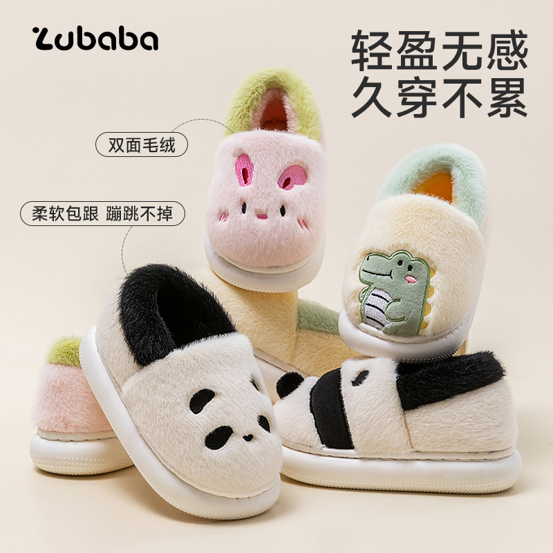 男孩毛毛拖鞋 居家室内防滑宝宝保暖棉鞋 女童包跟秋冬季 儿童棉拖鞋