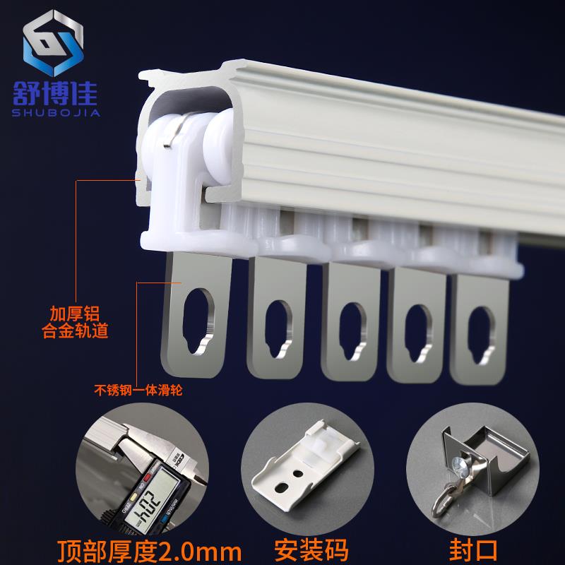 铝合金加厚窗帘轨道单轨双轨直轨滑道滑轮导轨滑轨顶装 窗帘杆 侧装