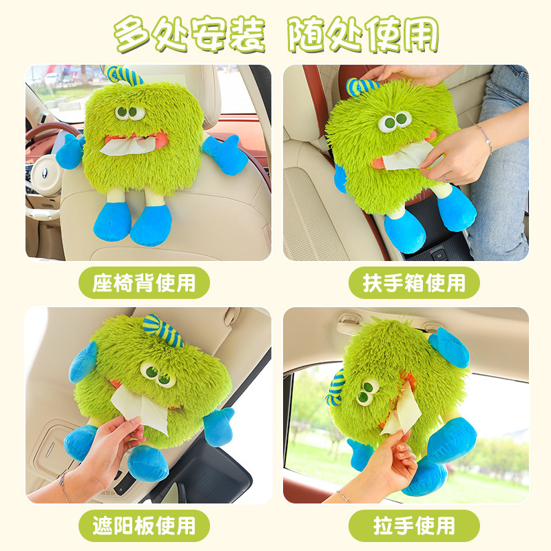 车载车用抽纸盒可爱毛绒汽车椅背挂式 饰用品 纸巾盒挂袋卡通车内装