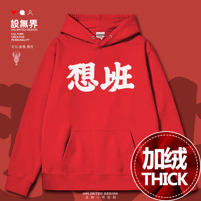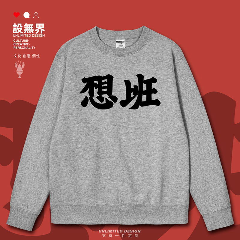 无界 潮0018设 不想上班拼接文字ins趣味个性 连帽卫衣男女加绒帽衫