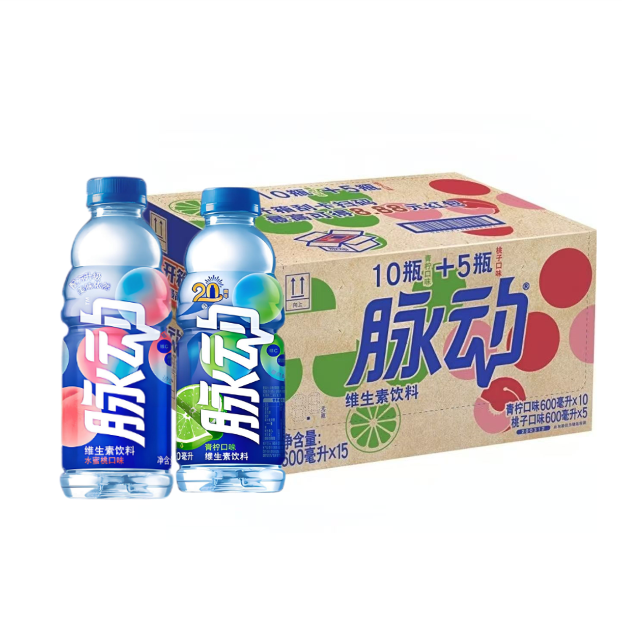无奖卡 脉动维生素饮料原箱混合装 青柠电解质桃子味600ml整箱