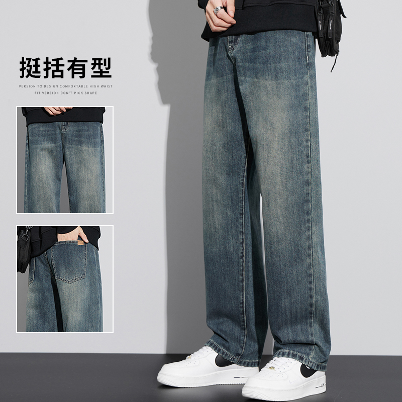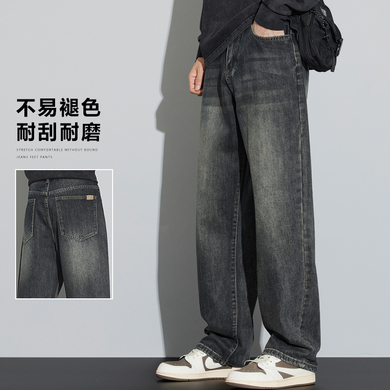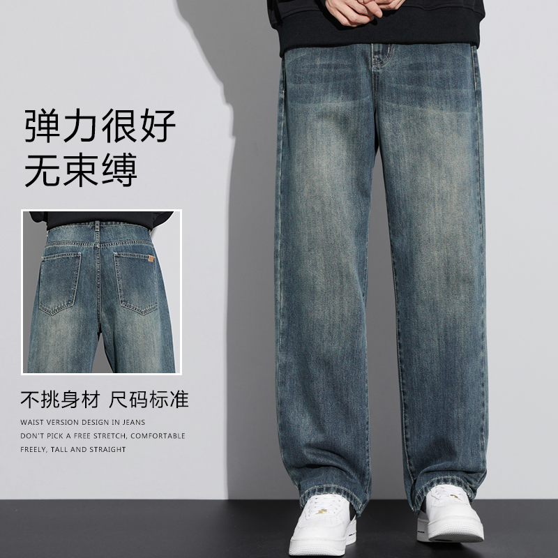 复古阔腿牛仔裤 休闲长裤 男2025春秋季 宽松直筒男士 子 新款 罗蒙美式