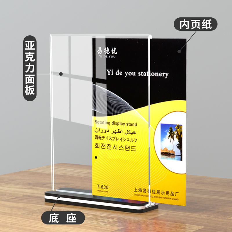 A4桌牌亚克力台卡架T型双面台签a5展示牌台牌产品介绍牌价目酒水立牌菜单展示架卡号牌a6点餐牌立牌定做定制