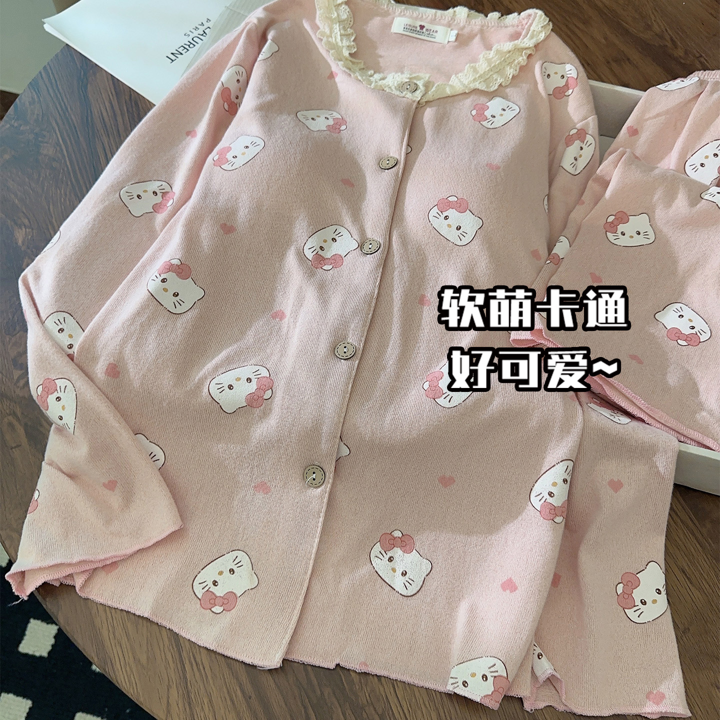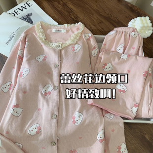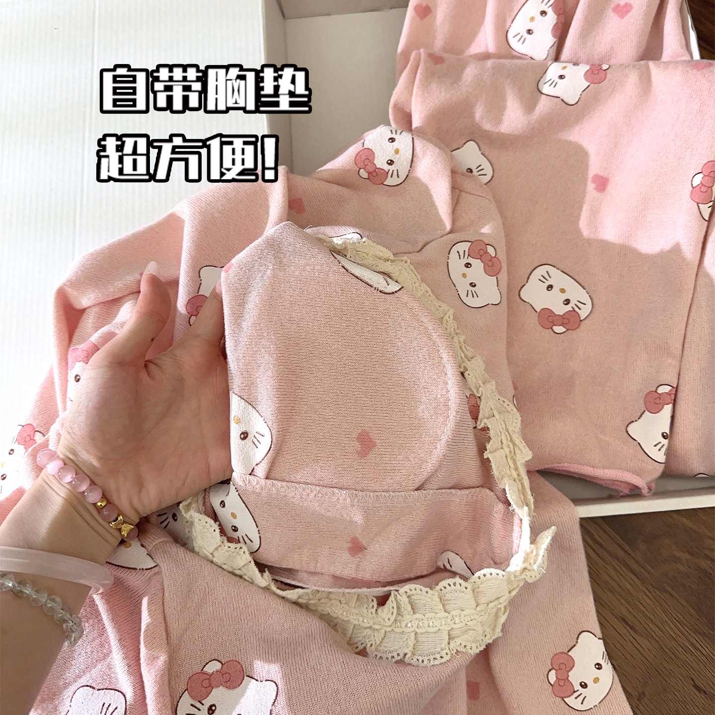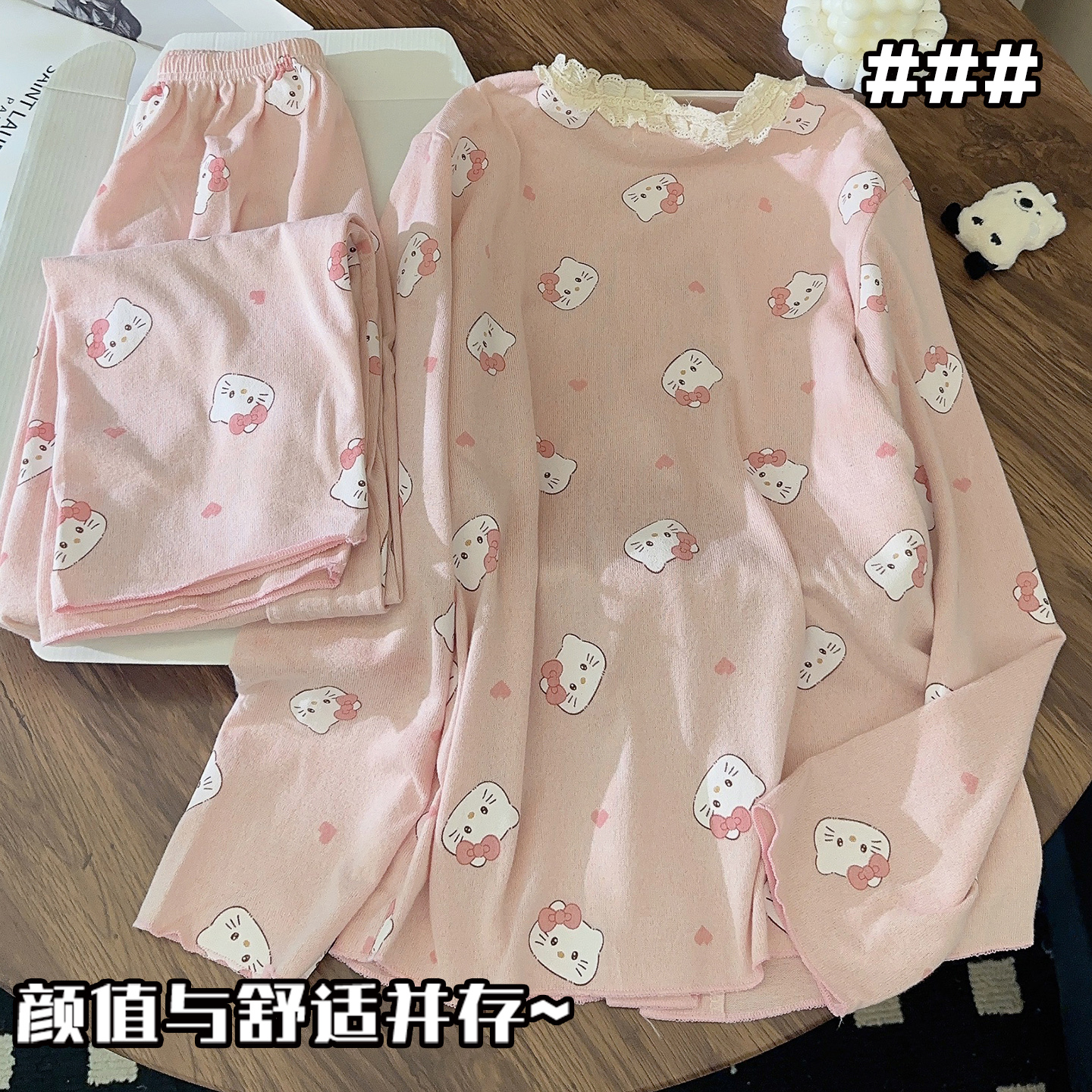 冬天可外穿学生家居服 带胸垫甜美少女风套装 KT猫睡衣女春秋季 长袖