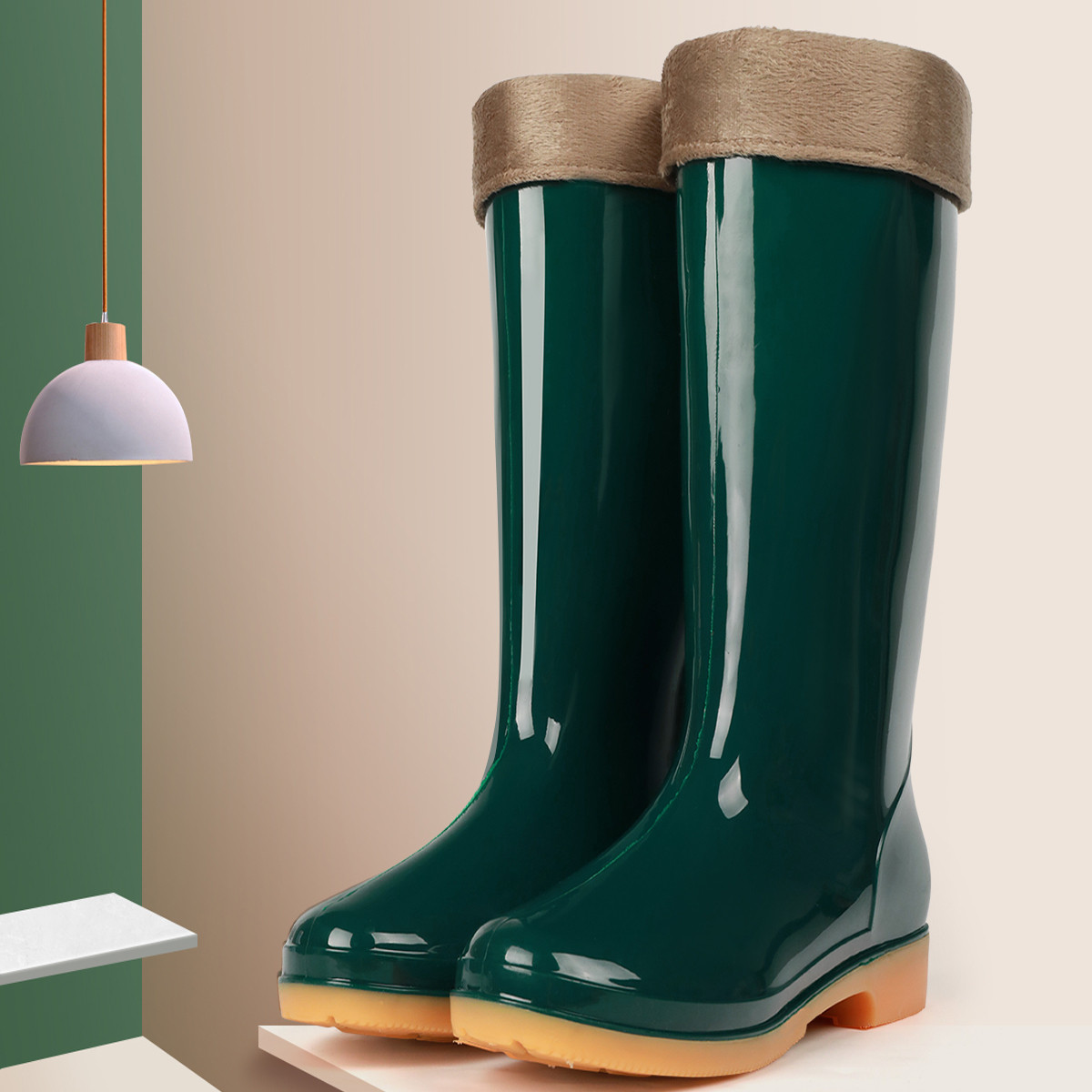 加绒棉雨鞋 高筒雨鞋 雨靴防水鞋 桶胶鞋 水靴女成人 套鞋 天猫正品