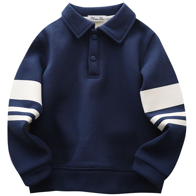 加厚POLO翻领打底衫 儿童长袖 男童加绒卫衣上衣潮 秋冬新款 2025新款