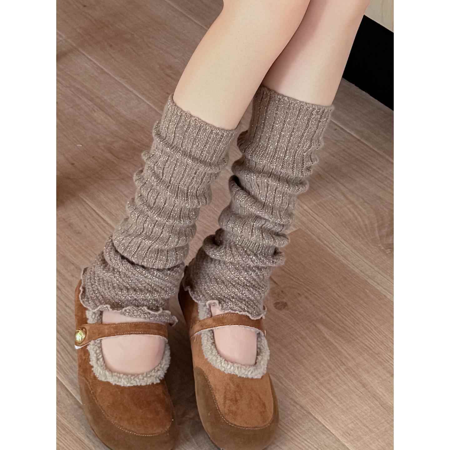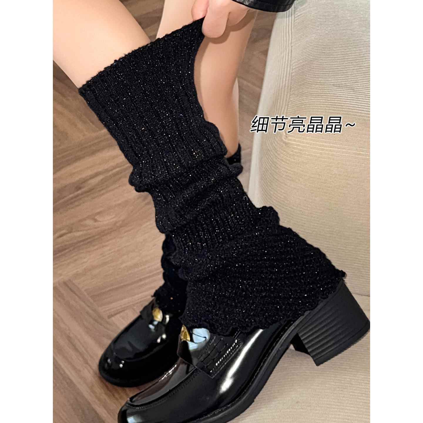 袜套堆堆袜子女款 秋冬加厚花边长筒灰色针织显瘦美拉德亮丝小腿套