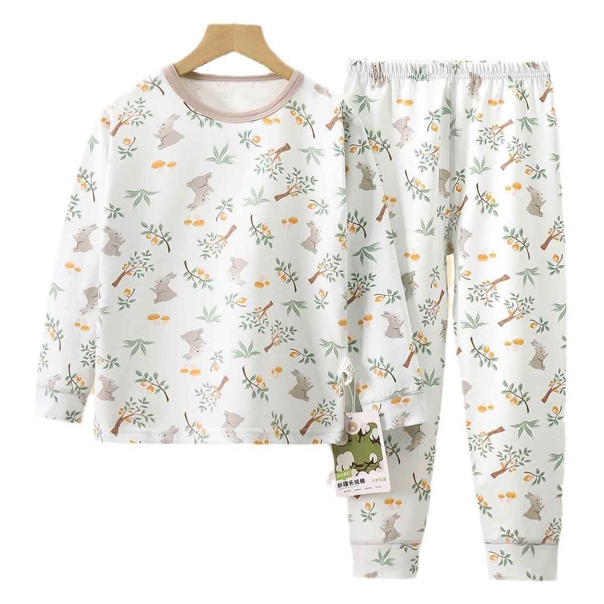a类无骨莱卡男女童秋衣秋裤 秋季 宝宝睡衣 儿童纯棉家居服套装 新款
