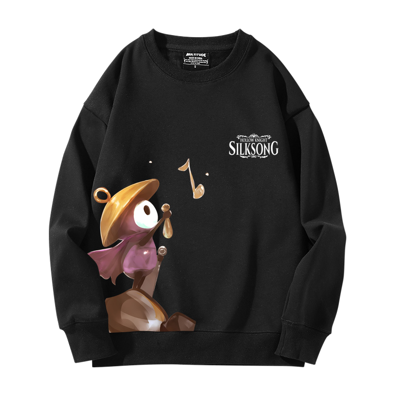 复古宽松百搭青少年休闲V领打底衫 黑色假两件圆领卫衣男秋季 美式