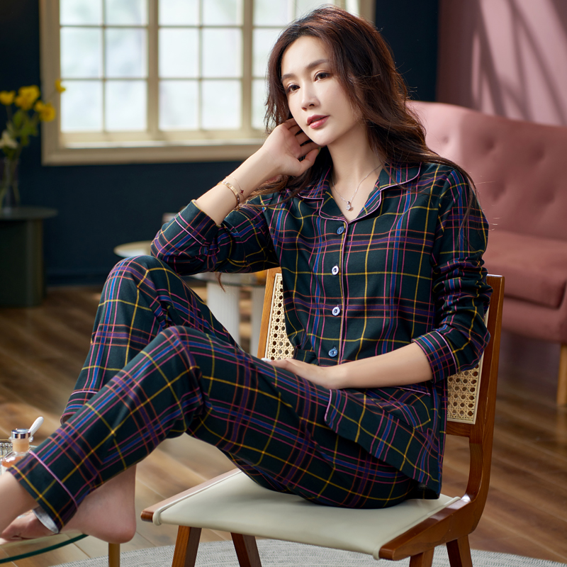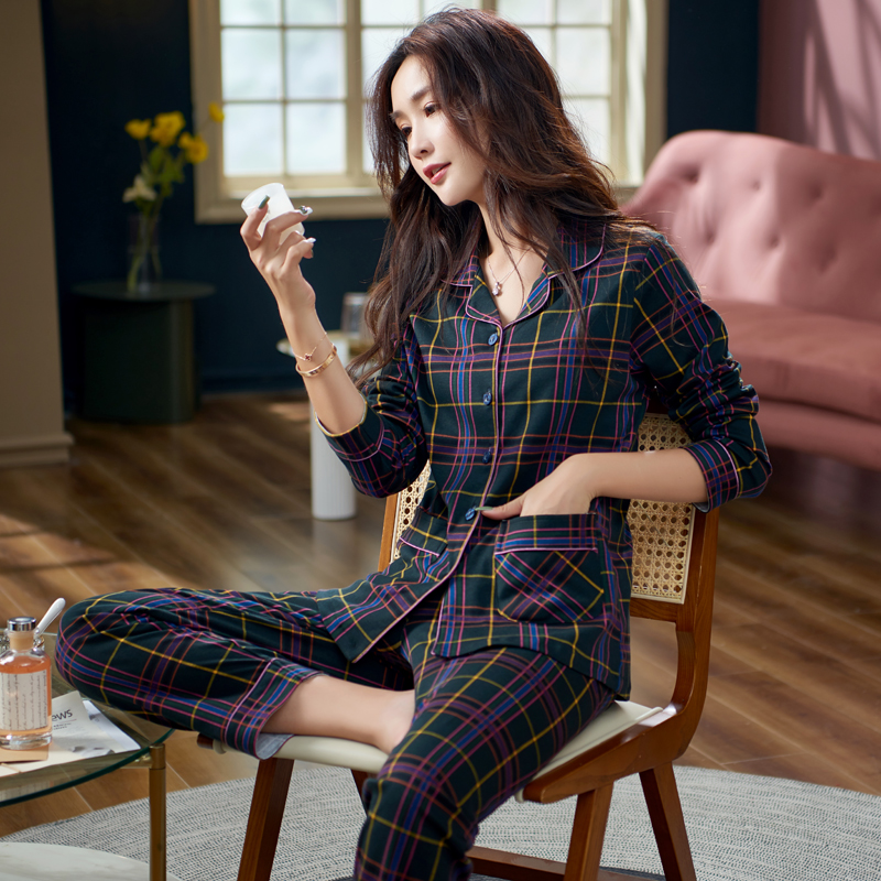 纯棉女士长袖 睡衣新款 秋款 家居服秋冬全棉大码 芬腾春秋季 套装 女款
