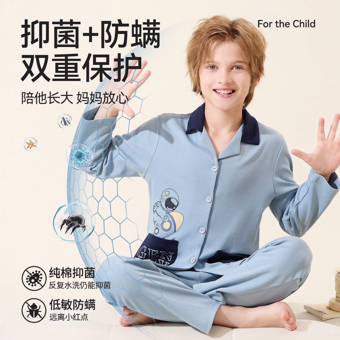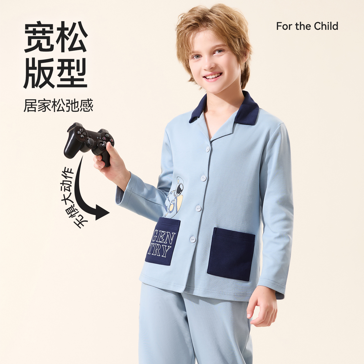 长裤 浪莎儿童睡衣秋冬季 长袖 男孩男童全棉家居服套装 纯棉2025新款