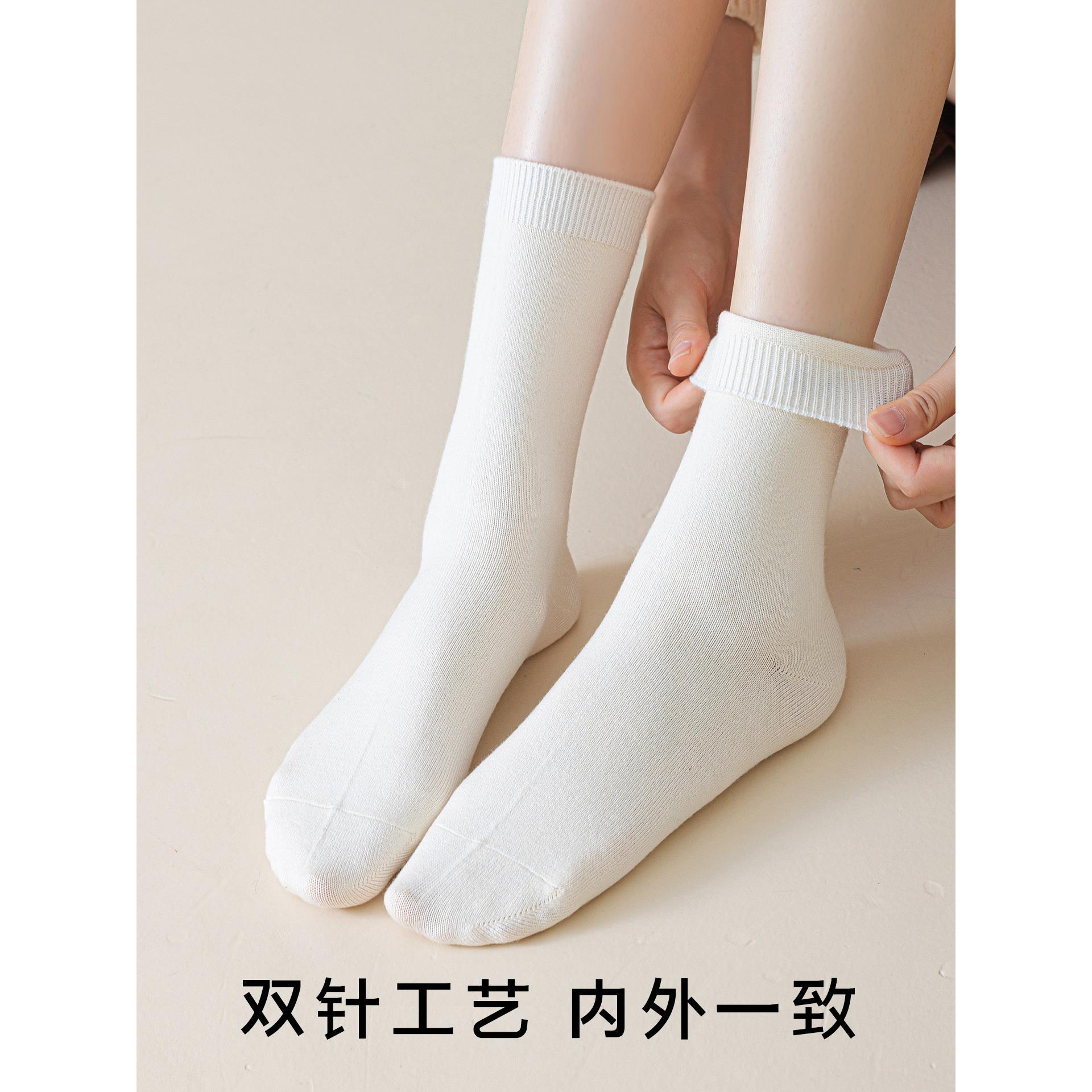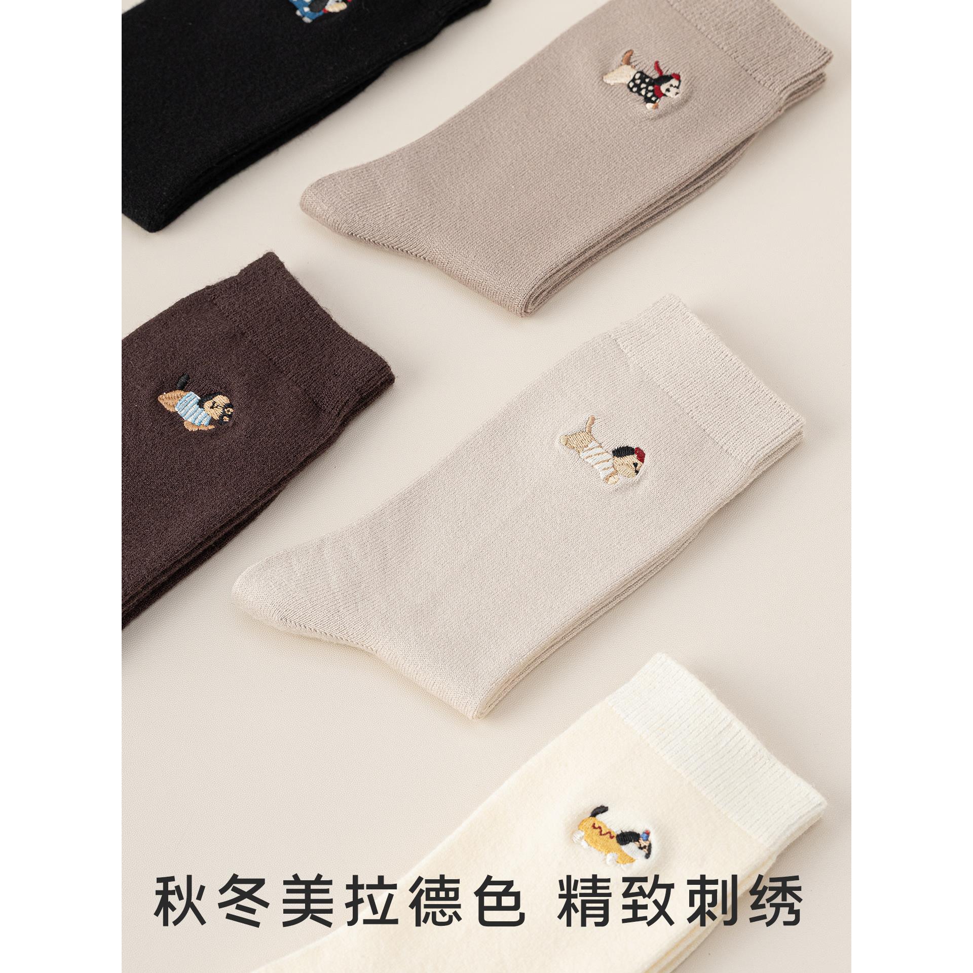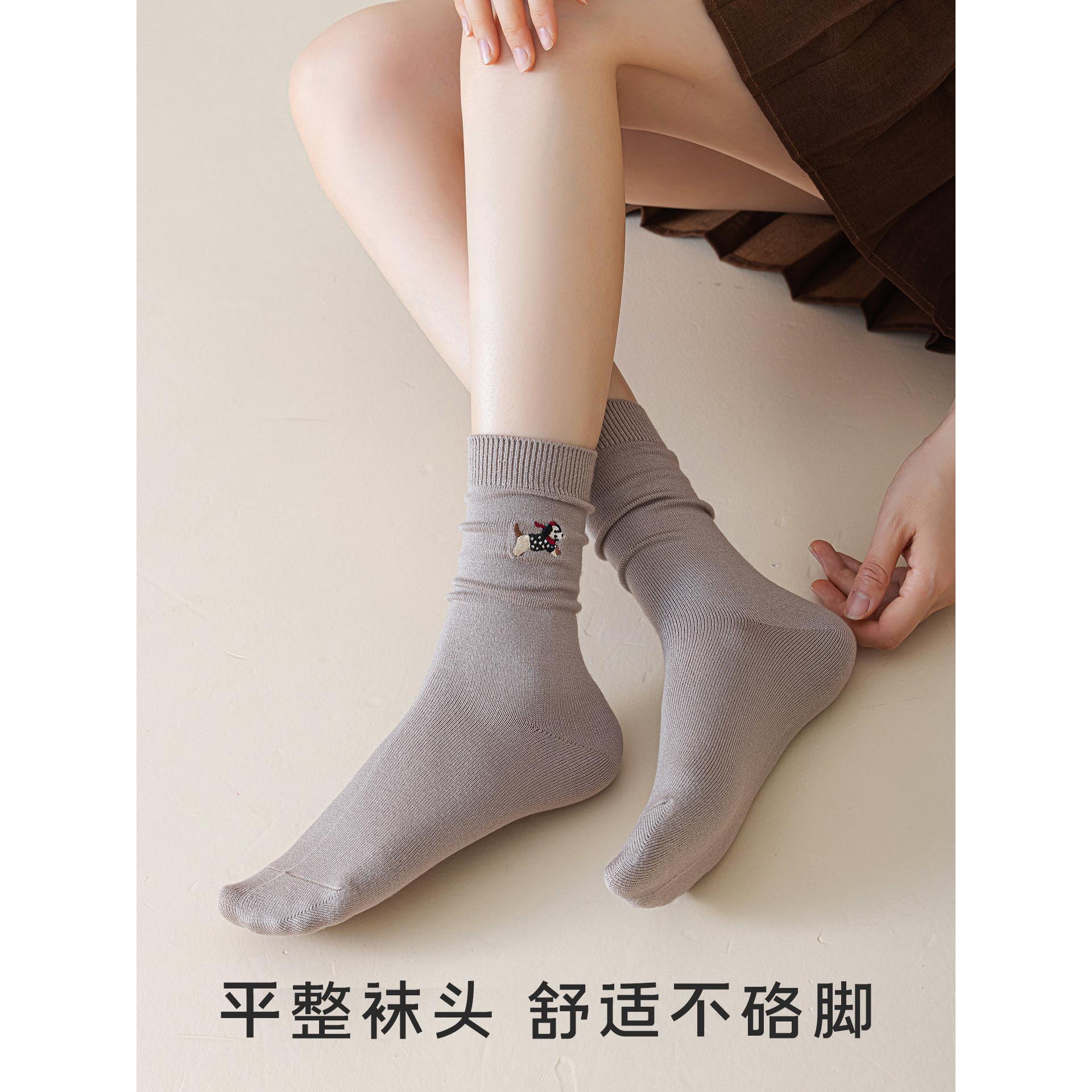 羊毛袜子女秋冬款 中筒袜防臭透气无骨小狗刺绣堆堆袜保暖女士长筒