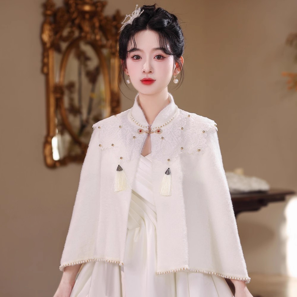 新娘婚纱礼服毛披肩新款 订婚旗袍外套斗篷珍珠水貂毛外搭 春秋冬季