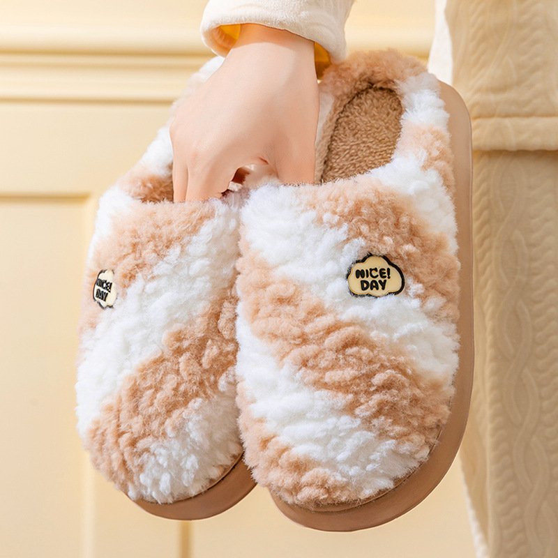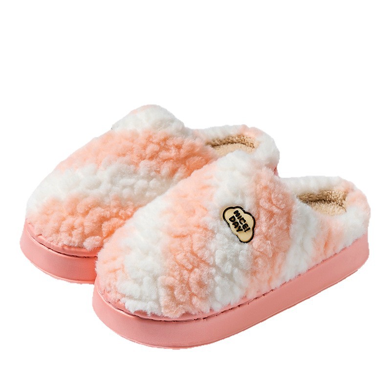 家居情侣轻便厚底保暖拼色毛毛绒棉鞋 月子鞋 男 女冬季 踩屎感棉拖鞋