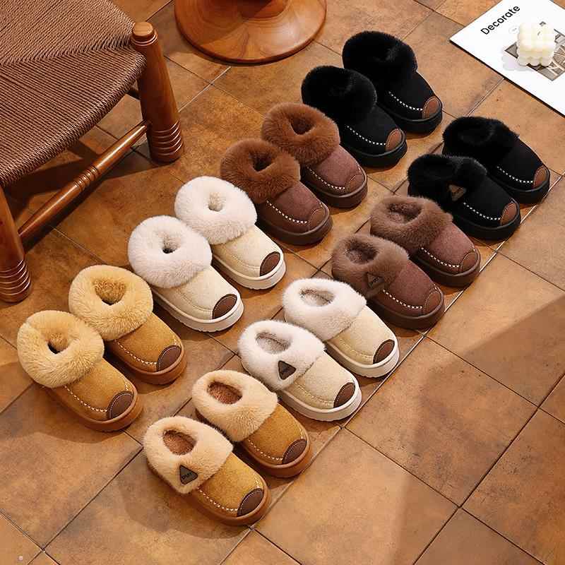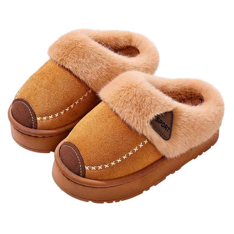 加绒保暖亲子棉鞋 子秋冬季 男童卡通防滑包跟女童家居鞋 儿童棉拖鞋