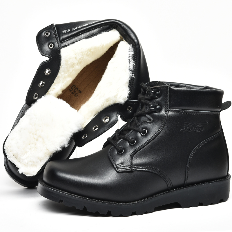 羊毛一体短筒劳保棉鞋 真皮羊毛靴男士 雪地防寒靴 3515强人冬季 正品