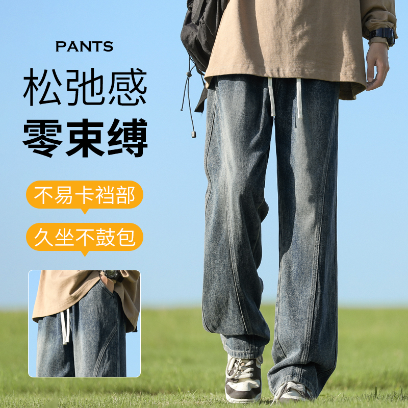 子男款 休闲加绒长裤 秋冬2025新款 复古直筒宽松男士 美式 回力牛仔裤