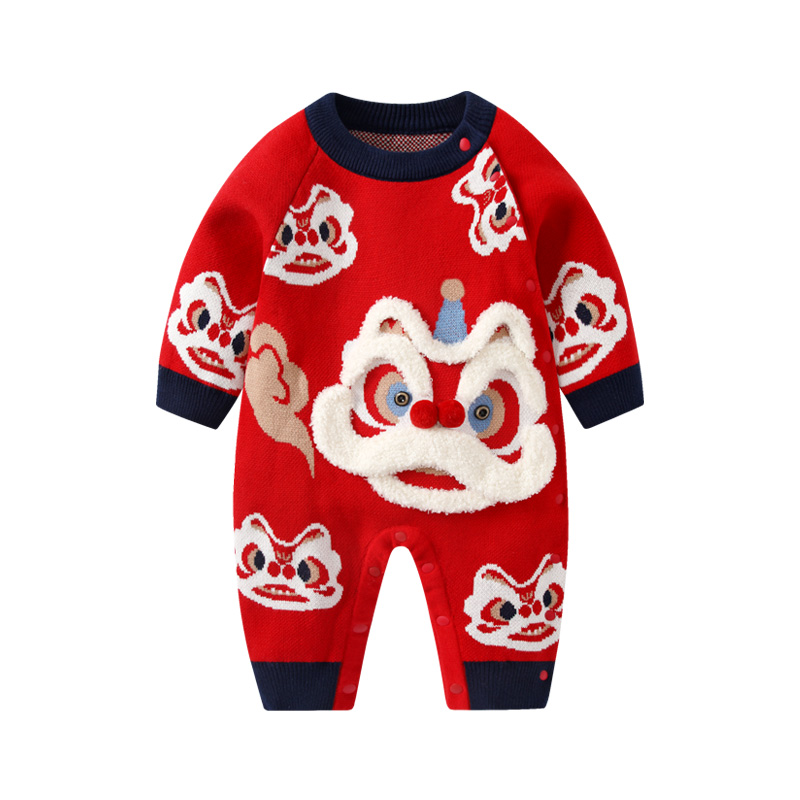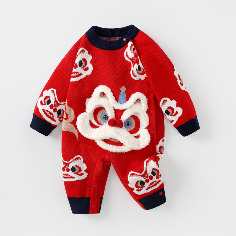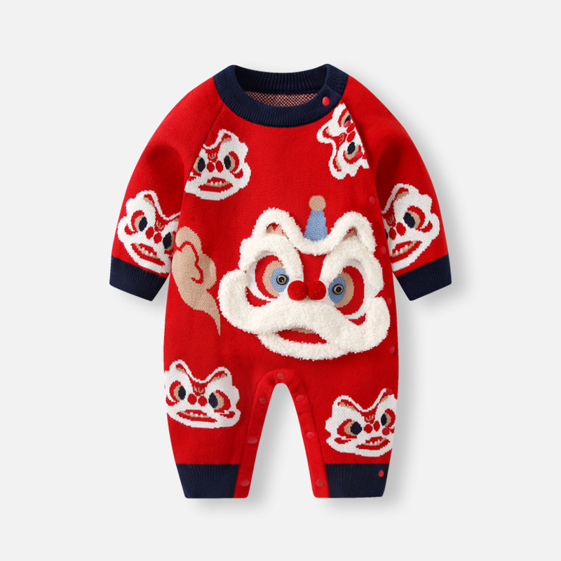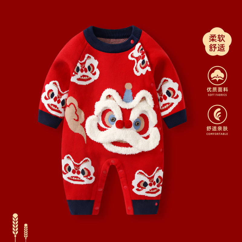 波步婴儿连体衣冬装 哈衣秋冬满月周岁衣服外套 2025男宝宝针织套装