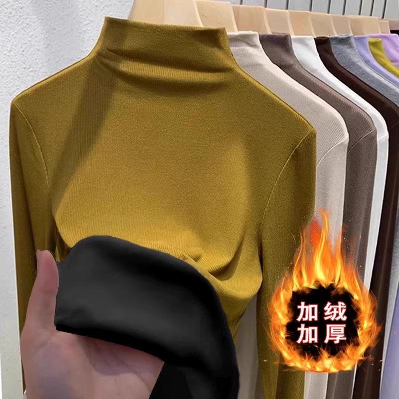 内搭长袖 加绒打底衫 加厚2025新款 显瘦t恤秋冬季 上衣1021h 女修身