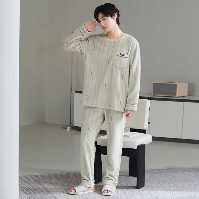 家居服保暖套装 睡衣三层夹棉加厚加绒法兰绒秋冬款 珊瑚绒男士 冬季