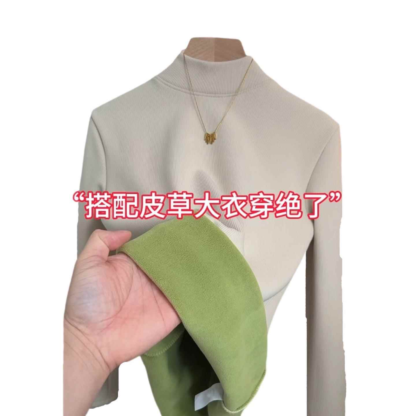 简约长袖 内搭时尚 上衣1022e 女秋新款 半高领加绒加厚打底衫