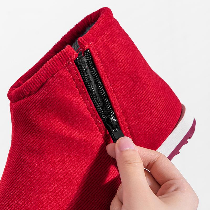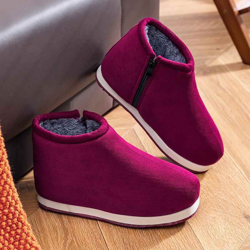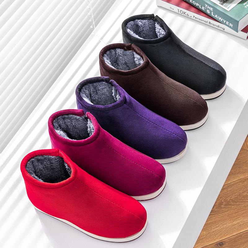 男女灯芯绒保暖加绒居家室内中老年橡胶底防滑手工棉鞋 冬季 棉拖鞋